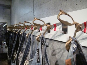 ちなみに店内の什器は、ブレーキとクラッチに使用されたハサミが。