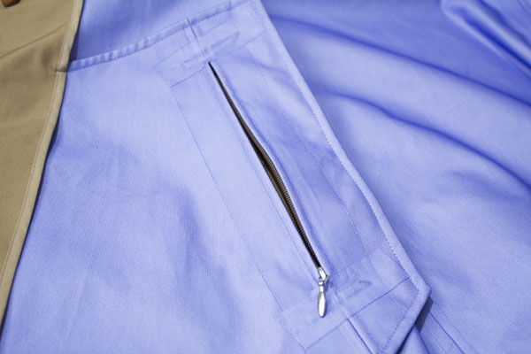 サイドポケットの内側は、フロントボタンを開けなくてもインナーウエアにアクセスできるようにファスナーつきのスルーポケット仕様と、、、日常でさりげなく使えて、それでいて高機能というのがこのコートだ。