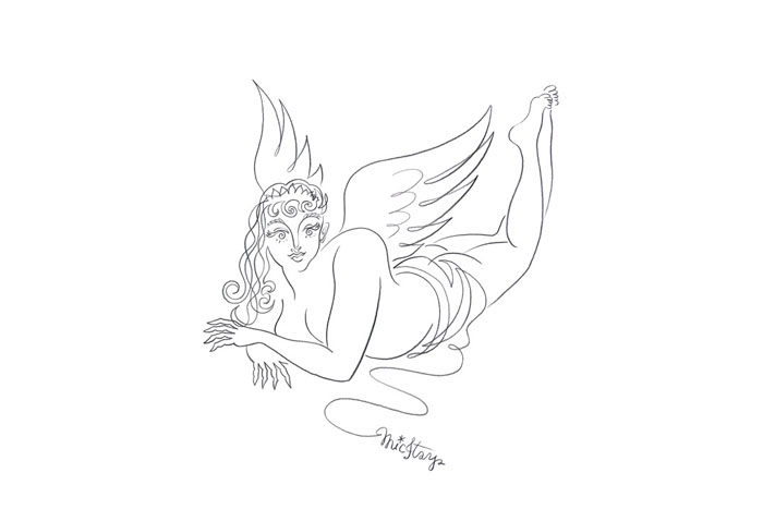 本展では、その天使にフォーカスし、過去のアーカイヴから選りすぐりの天使の絵を、新作などもまじえて展示・販売する。