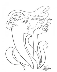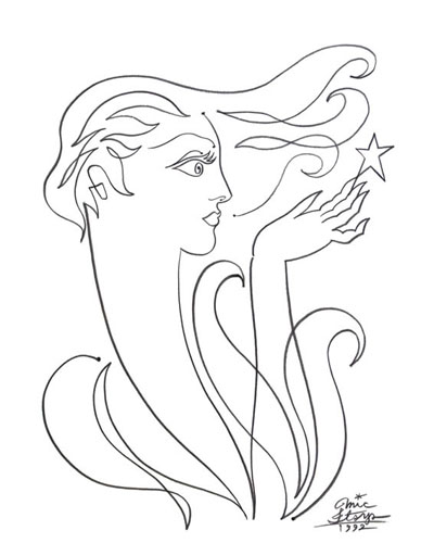 星の輝きとともに優美に羽ばたく天使の図は、時空を超えた「美と愛と平和」の境地へアプローチするイタヤ氏にとって核心的、かつ最大の人気モチーフだ。
