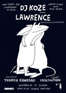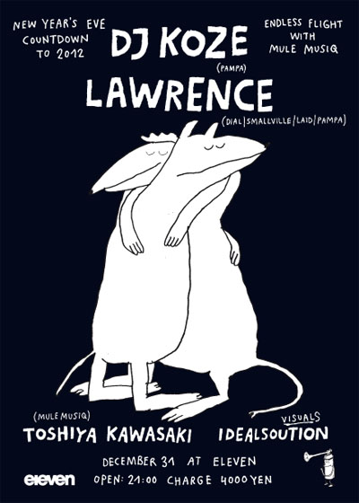 西麻布”eleven”がお贈りする2011年最後の夜は、エレクトリックミュージックレーベル「mule musiq」とともに”DJ Koze”と”Lawrence”を迎えた『endless flight with mule musiq』を開催する。