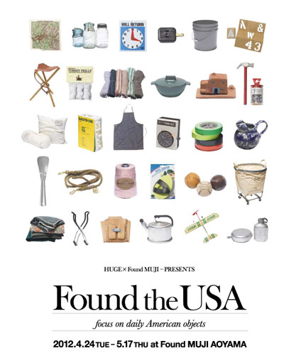 次号92号が「アメリカ特集」のファッション誌『HUGE』が、青山にある『Found MUJI』と共同で、誌面と連動したメイド・イン・USAの魅力に直接触れられるエキシビション『Found the USA』を、2012年4月24日より開催する。