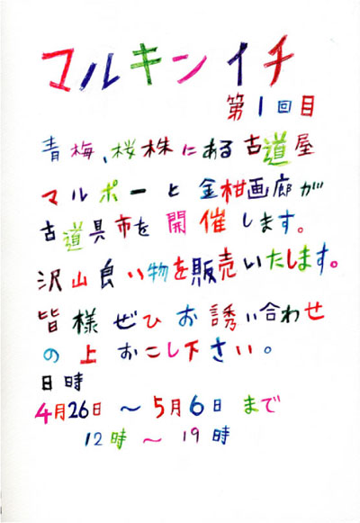 その名の通り『マルポー』と『金柑画廊』による古道具市だ。