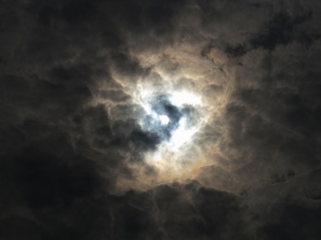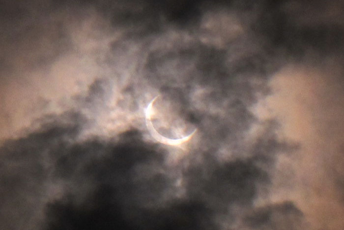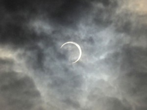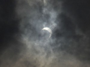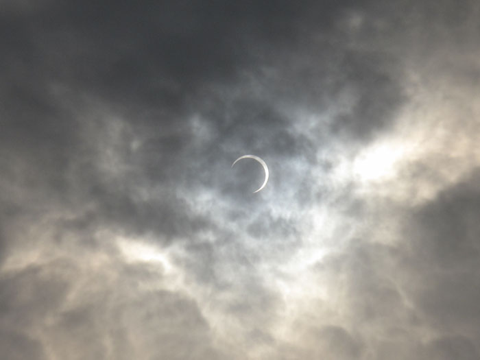 こりゃダメかなと思ったそのとき、その瞬間だけ欠けはじめた太陽がチラリ。。。