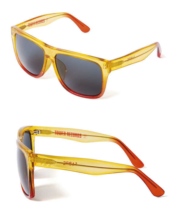 フレームカラーは、タワーレコードをイメージしたイエローとレッドを組み合わせたトレンドのグラーション仕上げ。レンズは遊び心あふれるファンキーなマルミラーとベーシックなグレーの2色。特典のタワーレコードロゴが刻印されたメガネケースもついて、タワーレコード・オンラインとタワーレコード渋谷店、新宿店、横浜モアーズ店、梅田NU茶屋町店で販売中。