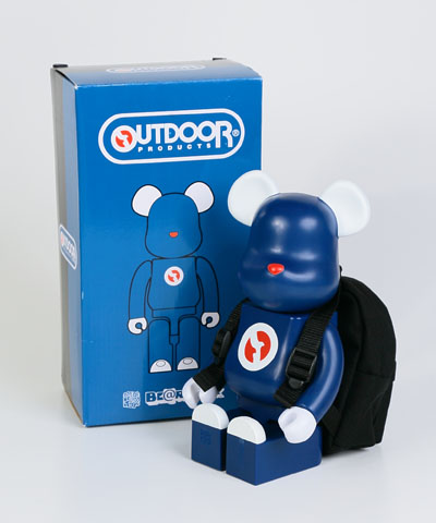 今回は、その『OUTDOOR PRODUCTS』の定番デイパックのミニサイズを背負った、高さを約28cmもの大きさの「BE@RBRICK」が登場だ。