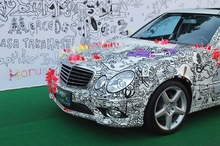 今回は、”高橋信雅”、”Phillipp Kaeser”、”金丸遥”の3名のアーティストが、”メルセデスベンツ”をキャンバスに手がけた、ポップな作品を『バーニーズ ニューヨーク』横浜店前にて展示される。