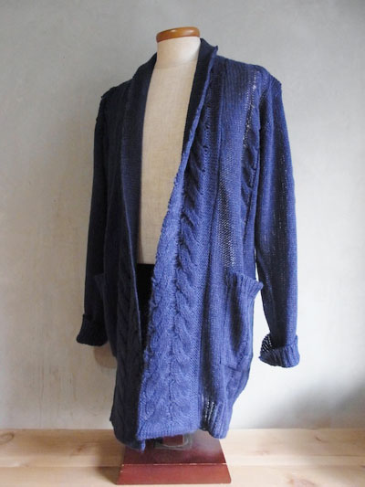 今回は、『DISCOVERED』の2012 A/W Collectionラインナップのなかで、肌触りの良いキッドモヘアをアランニットに編み込んだローブのネイビーを別注。
