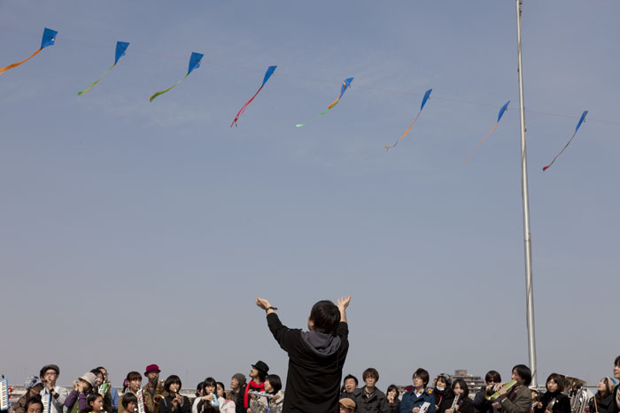 アイディアを募り、チーム皆で知恵を絞って新たに開発した「音の出る凧」や「音の出る空飛ぶもの」から、さまざまな音が降り注ぎます。荒川河川敷・虹の広場を舞台に、地上を彩る楽器を手にしたたくさんの演奏者たちと、地上と上空との間に生まれたアンサンブルは、一体どのような音の景色を生み出すのでしょうか。
