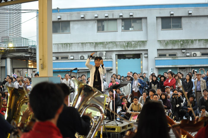 音楽家やパフォーマーが一斉に各々独自のパフォーマンスを演じることで、さまざまな音楽がお互いに自立しながら、同じ時間と空間を共有して響き合うコンサートです。今回は「WORLD MAP」をテーマとして、多数の一般参加の方々を含めたあらゆるジャンルの音楽、ユニークなパフォーマンス、市場に縁のある演目など、総勢200名にも及ぶ演奏者によって市場に「世界の縮図」を作り出し、来場者を「音」の世界旅行へといざないます。
