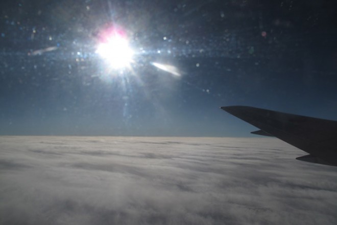 飛行機の窓からみえる雲の上の世界は、なんとも幻想的。