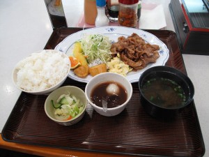 独特のドロッとしたタレがトーキョーの生姜焼きとはちょっとちがった感じで、野菜もキャベツの千切りだけじゃないんですね。果物にミカン?とドラゴンフルーツが添えられていました。