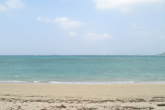途中、何故か道をまちがえ、迷った末に着いた場所が、青い海、白い砂浜が広がるまさに南国のビーチ。風が強かったのが残念でしたが、なんともその美しさにはココロを奪われました。