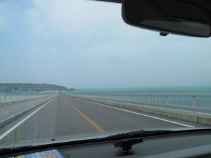 那覇空港から那覇市内へバスで移動し、あらかじめ予約していたレンタカーを手に入れ、まずは本島北部にある古宇利(こうり)島の古宇利大橋を目指し、高速道路を一路北東へ。
