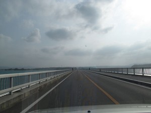 さて、無事昼食も終え、すこし休んでいると風がかなり強くなり、雲行きがあやしくなりはじめ、ついにポツポツと雨が。急ぎ古宇利島を目指し出発。