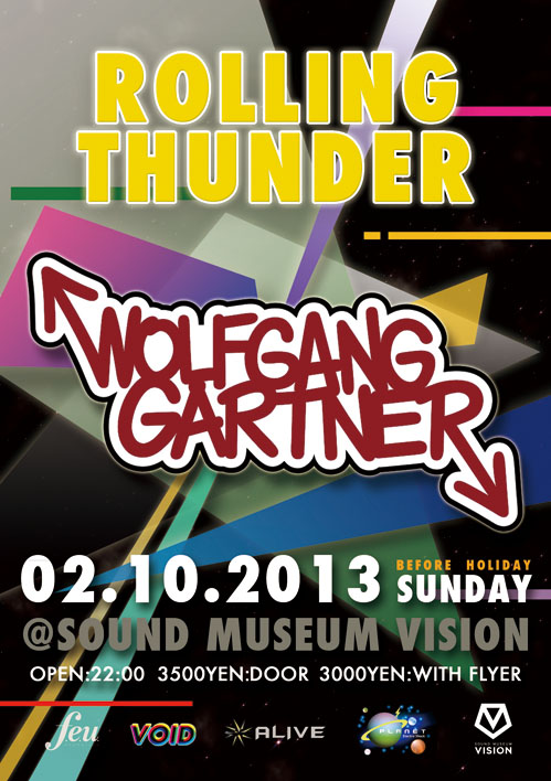 いまが旬のワールドワイドアーティストを招致するパーティ『ROLLING THUNDER』が、EDMシーンのライジングスター”WOLFGANG GARTNER”を呼び、2013年2月10日に、渋谷「SOUND MUSEUM VISION」で開催する。