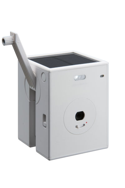 日没後や曇りのときは、ハンドクランクジェネレーターを手回し。
