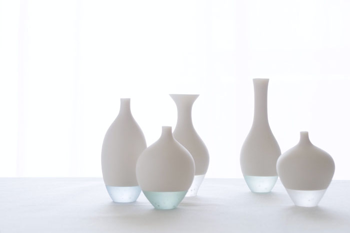 “田中美佐”は、京都を拠点に活動し、やわらかい印象のクリーム色の磁器と、ぼんやり、そしてふわっとしたあたたかみのあるガラスを融合させた、モダンな佇まいの作品が特徴的だ。