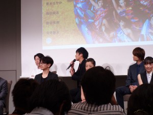 ※プロモーション用の映像がプロジェクターにて上映後、出演者がそろって登檀。