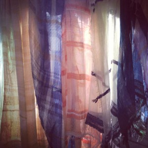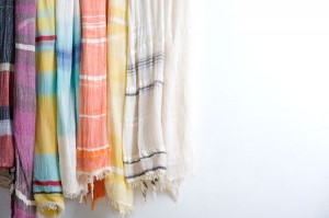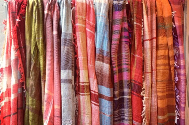 今回は、縦糸にコットン、横糸にウールを使用した秋冬のショールと、コットン100%のショールにプリントをほどこした新作のショールの展示と販売をおこなうとのこと。