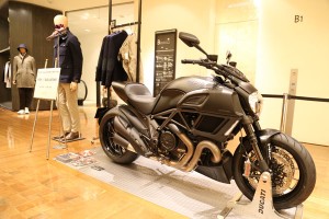 「バーニーズ ニューヨーク」では、『ドゥカティ』とのコラボレーションイベント「DUCATI meets BARNEYS NEW YORK』を各店で開催しており、銀座店ではベストセラーモデルで唯一のクルーザーモデル「ディアベル」、しかもバーニーズカラーの真っ黒な「ディアベル」の実車がディスプレイ中だ。