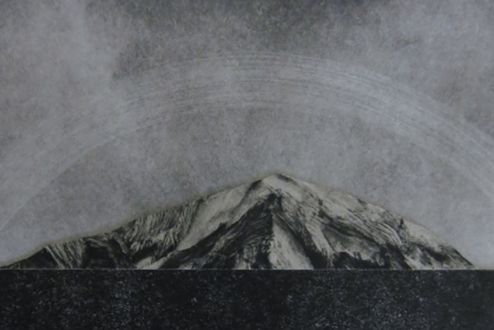 『US ルート395』は、江戸の浮世絵師、”歌川広重”の『東海道五十三次』から直接影響を受けた版画作品のシリーズ。