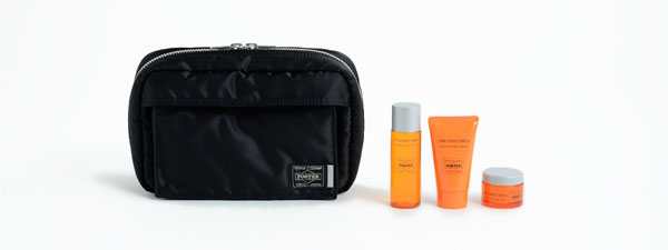 『吉田カバン』のモノづくりのコンセプトのひとつでもある「旅」をテーマにしたトラベルキットを、『SHISEIDO MEN』と共同開発。旅先のどこでも健康的な肌を持続するスキンケアキットと、それたを整然と収納することができる専用ポーチのセットです。トラベルキットのパッケージカラーは80周年を記念したレスキューオレンジの特別仕様です。