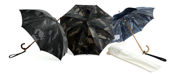 吉田カバン』オリジナルの迷彩柄のナイロンツイルを使用し、レザーストラップを取り付け持ち運びがしやすい仕様となっている。オリジナルデザインのキャンバス傘袋が付属するスペシャルなアイテム。