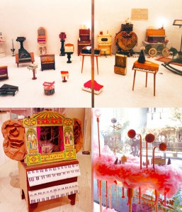 今回は、こわれたままのふるい楽器たちの断片をリメイクして音や香りを閉じこめたボックスアート作品や、年代や形状もさまざまなアンティーク楽器を多数展示。