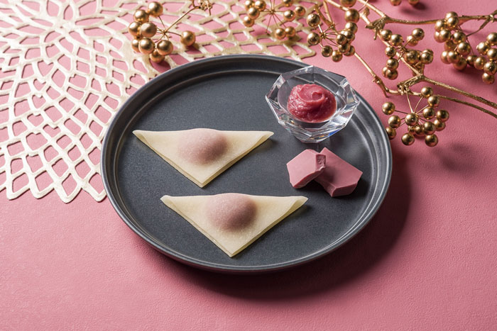 今回は、スイスのバリーカレボー社の業務用「ルビーチョコレート RB1」を使用し、「おたべ」とのコラボレーションを実現。