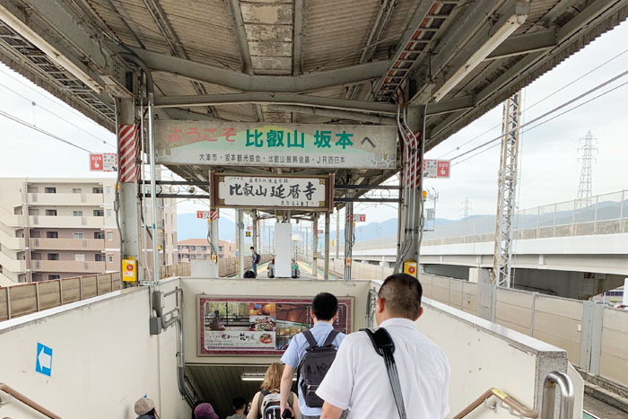 そこから約15分ほどの10時28分(※じっさいは若干遅れ10時30分くらい)で、第一の目的地である比叡山坂本駅に到着。