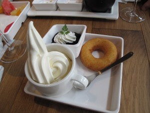 ドーナッツにソフトクリームをつけて食べるというのが”Market TERRACE”流らしいです。