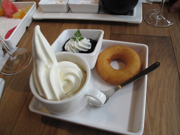 豆乳ソフトクリーム、豆腐のドーナッツ、そしてコーヒーゼリー。