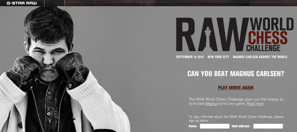 さらに、2010年9月10日には、G-Star がニューヨークにて『RAW ワールド・チェス・チャレンジ』グローバル・チェス大会を開催する。