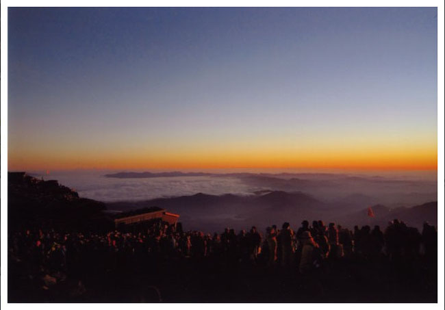 コメント:見事な御来光に見とれ、ふと周囲をみるとその御来光に照らされた人々や風景もとてもキレイでした。