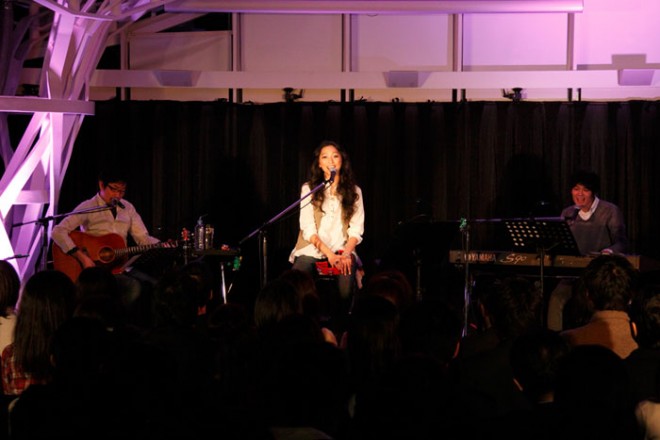 小学生のころ聖歌隊に所属し、賛美歌などを歌っていたという彼女の美しい歌声に、訪れた人は耳を傾けていた。