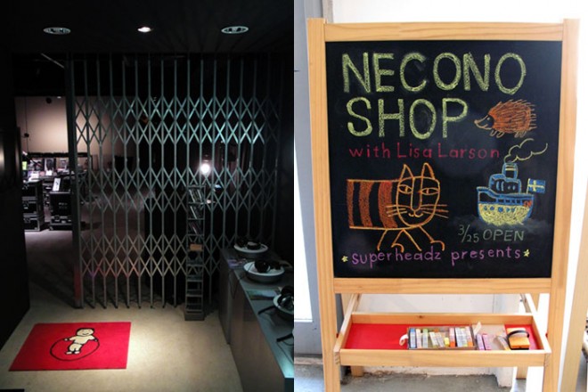 “necono shop with lisa Larson”は、先日コチラでも紹介した『neconodigitalcamera』をデザインした北欧の陶芸家”リサラーソン”の陶器、グッズのオンリーショップ。
